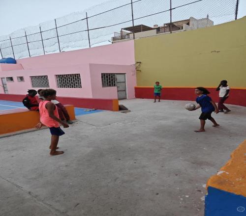 阿罗介绍,佛得角淡水资源稀缺,种不出适合踢球的草,大部分人造草球场全是中国援助,包括社区健身器材也是中国援助建设,“在这里,每个村庄都会有一个足球场,人造草的、水泥地的、土沙的,没有足球场也能开块土地出来,拿木头做球门。”