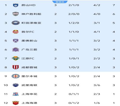 亚冠精英东亚区第二轮结束了所有比赛,最新积分榜如下!